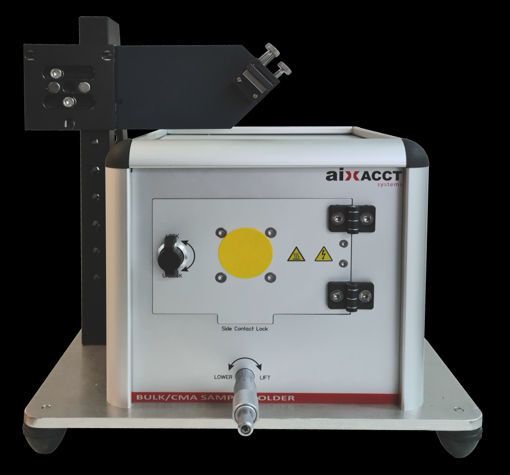 Der Probenhalter Bulk/CMA eignet sich für eine Vielzahl verschiedener Materialien und Probengeometrien. Sowohl Bulk als auch Multilayer und sogar Polymere können damit vermessen werden.